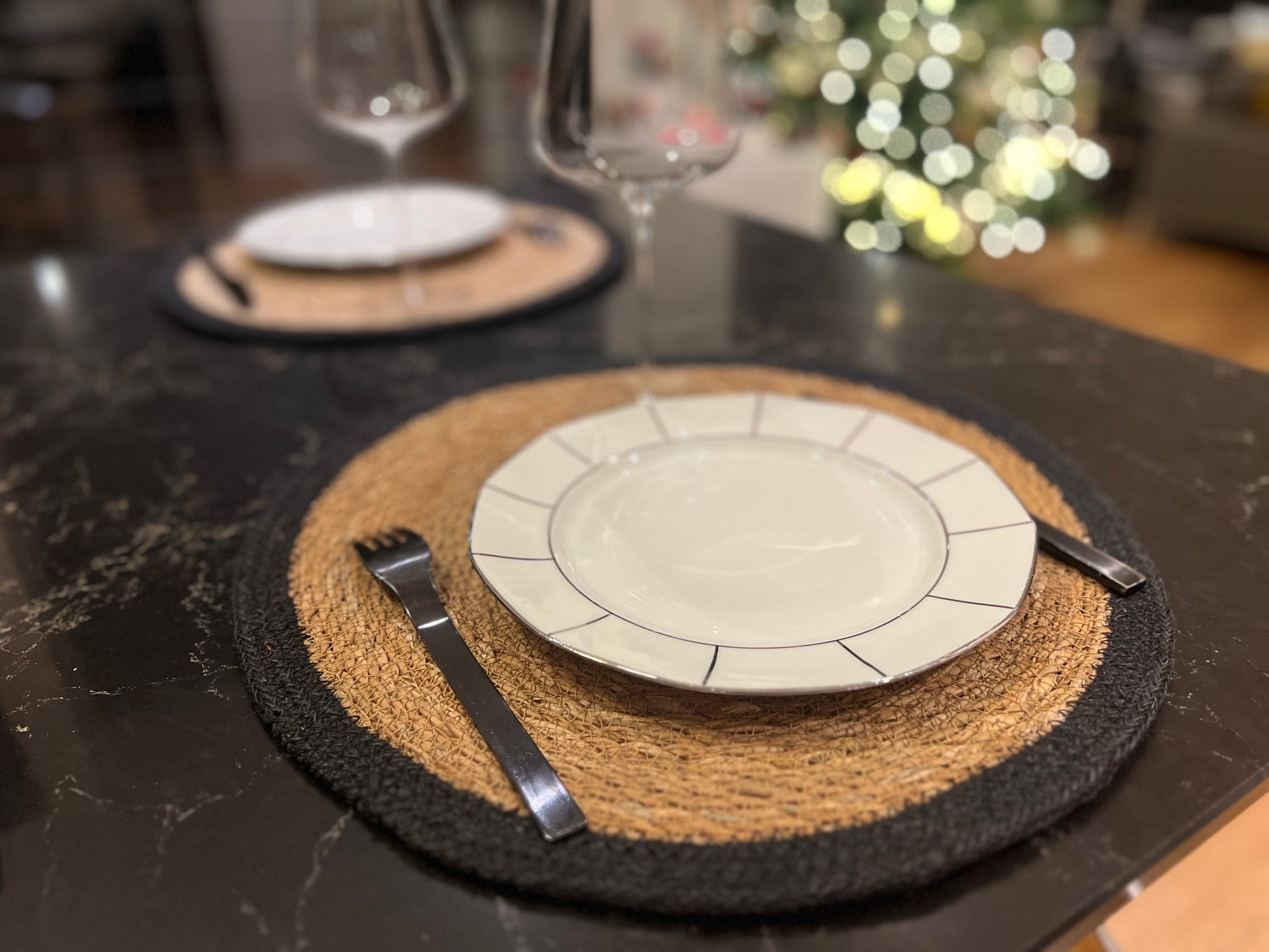 SET DE TABLE ROND FIBRE NATURELLE ET NOIRE