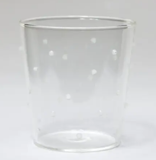 Un verre avec de petites billes de verre blanches décoratives, comme un revêtement plumetis.